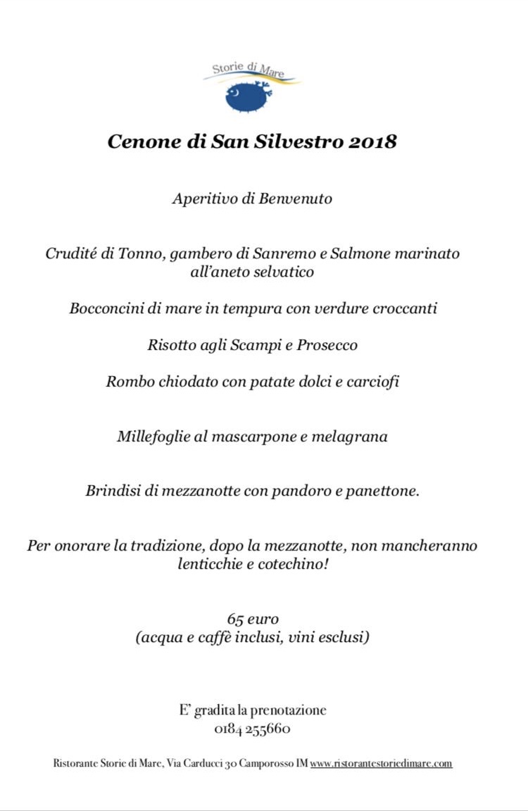 9 December 2018 by Storie di Mare Capodanno 2019! Cenone a Storie di Mare Share this: Email a link to a friend (Opens in new window) Email Like Loading...